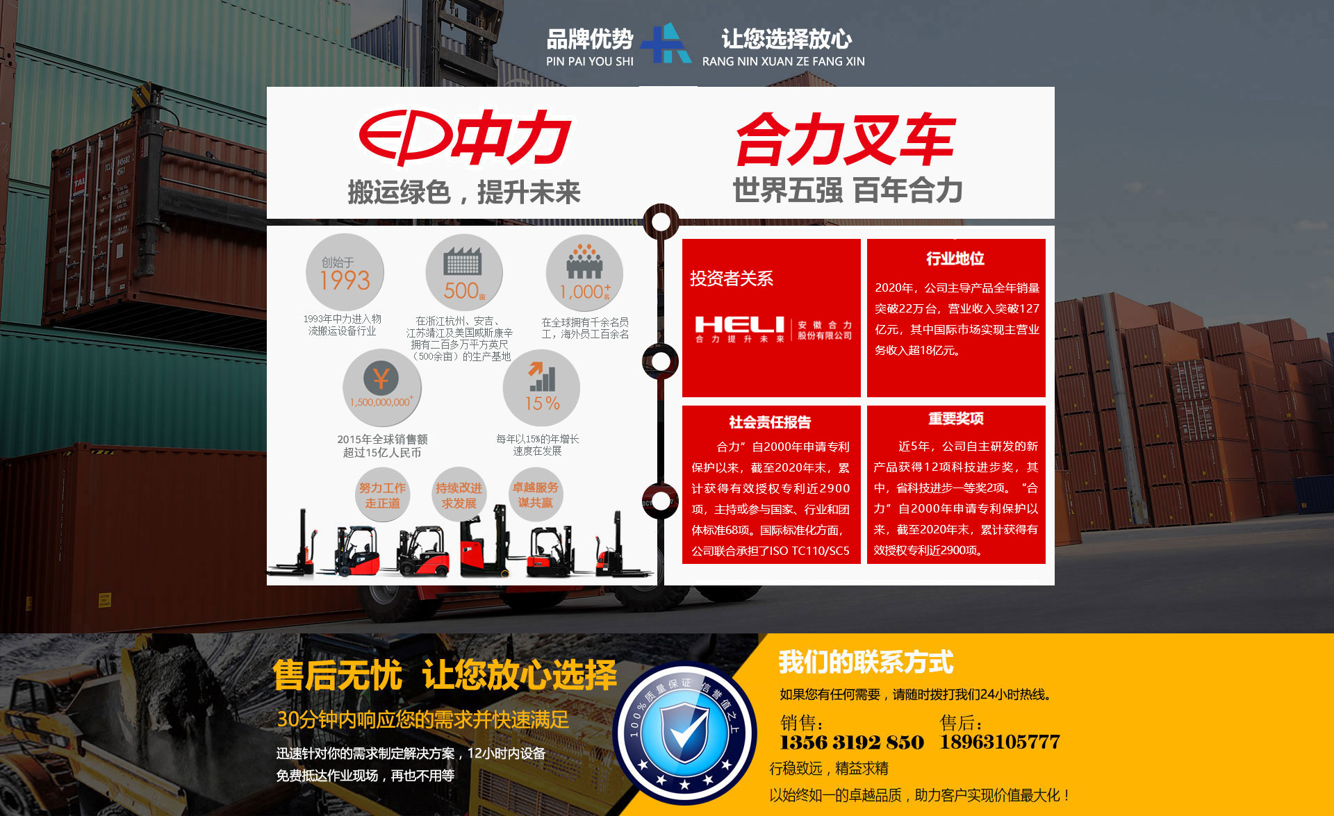 中力公司自1993年開始進入現(xiàn)代物流設(shè)備制造業(yè),是專業(yè)從事叉車及倉儲設(shè)備的全球性制造企業(yè)。中力以產(chǎn)品技術(shù)創(chuàng)新,不斷滿足客戶定制要求而先于同行業(yè)。 榮獲德國紅點設(shè)計大獎及美國、中國數(shù)百項專利,并因此得到了百事可樂、可口可樂、沃爾瑪、特斯拉、德邦等數(shù)百家全球500強企業(yè)及國內(nèi)物流龍頭企業(yè)的青睞。 ......